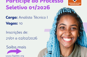 Inscrições podem ser feitas até 2 de fevereiro pelo site da FAPETEC e contempla profissionais de diferentes áreas de formação