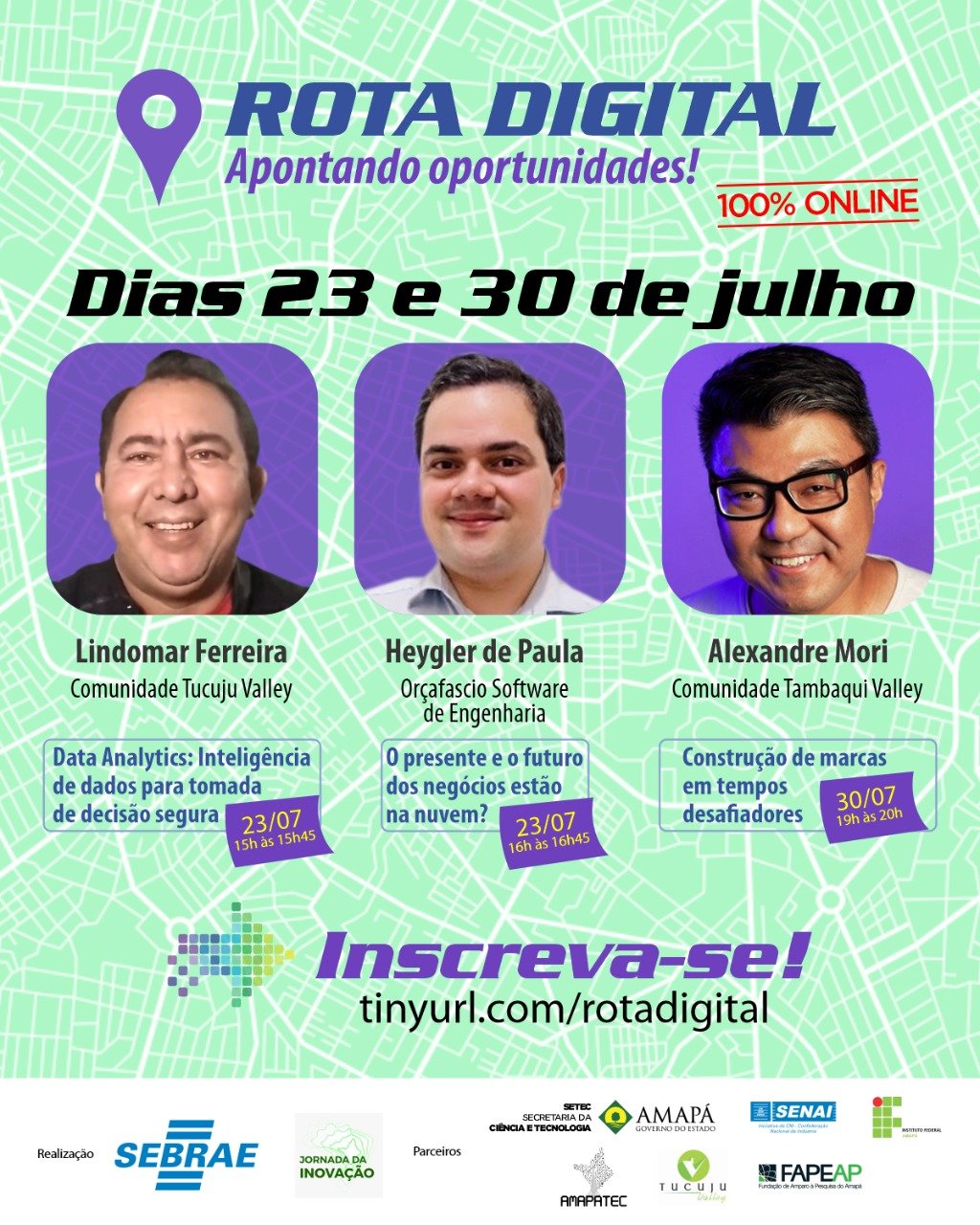 O Sebrae realiza a Rota Digital e conta com os parceiros, Comunidade Tucuju Valley, Amapatec, Secretaria de Estado da Ciência e Tecnologia do Amapá (Setec), Fundação de Amparo à Pesquisa do Amapá (Fapeap), Serviço Nacional da Indústria (Senai), e Instituto Federal do Amapá (Ifap).